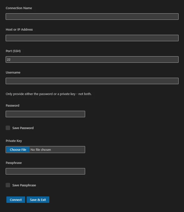 Enter in the systems details in the window that appears. You need either a password or a private key.